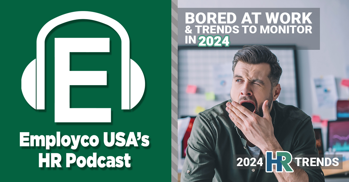 Join Rob, Scott, and Jason in this month’s HR podcast as they discuss workplace boredom and the key trends shaping HR practices in 2024. They take a look at a recent SHRM survey that revealed nearly 70% of employees feel disengaged or bored at work. They dissect potential causes, from communication breakdowns to the challenges of remote work, highlighting the importance of meaningful interactions and addressing employee well-being.